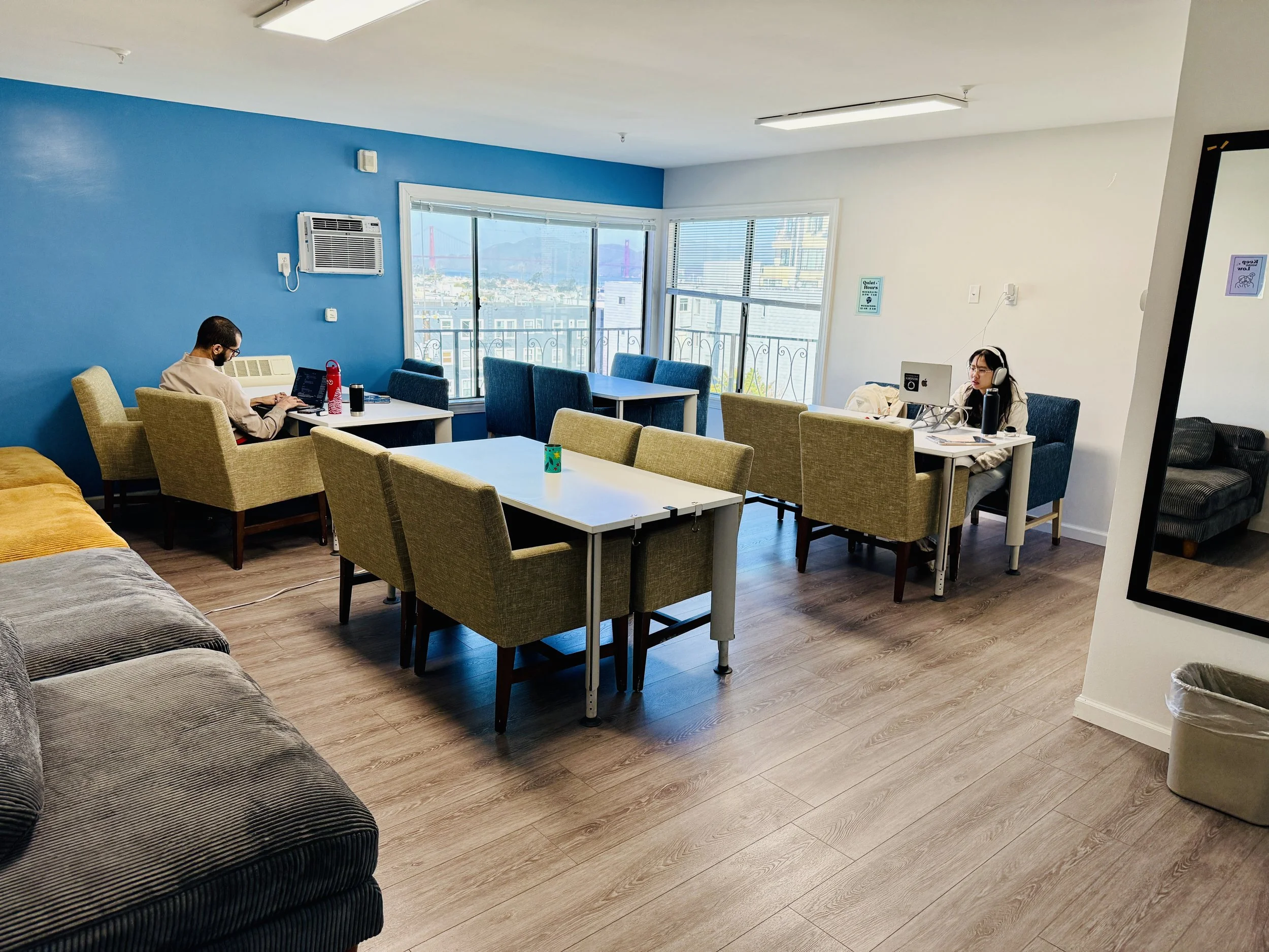 Relax, recharge, and have fun in our welcoming recreation room. Whether you're watching TV, playing games, or hanging out with friends, it’s the perfect place to unwind and connect with the community.